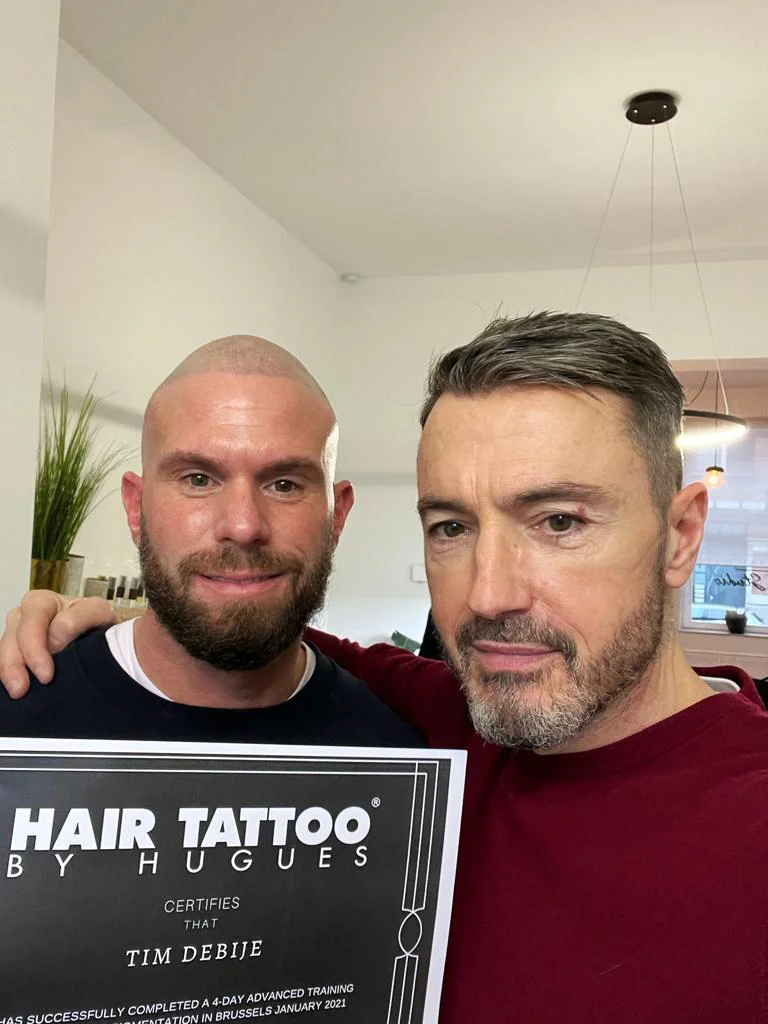 Deshalb begann Tim mit einer MHP-Ausbildung in den Niederlanden. Tim fand diese Ausbildung nicht gut genug, da er immer noch das Gefühl hatte, nicht alles über die MHP zu wissen. Seine Motivation, ein MHP-Künstler zu werden, war jedoch noch größer geworden. Er setzte seine Ausbildung an der Brandwood Clinic im Vereinigten Königreich fort, mit Paul Clark und Simon Lane als Mentoren, mehrfach preisgekrönt und weltweit führend auf dem Gebiet der MHP. Mit seiner Leidenschaft für diesen Beruf ist er bestrebt, sich weiterzuentwickeln und seine Spezialgebiete zu verbessern. So erhielt er kurz darauf auch erfolgreich sein Hair Tattoo By Hugues-Zertifikat. Hugues ist ebenfalls ein preisgekrönter MHP-Künstler mit mehreren weltweit gewonnenen Titeln und hat einen Preis für den besten internationalen Trainer erhalten. Zu guter Letzt besuchte Tim eine weitere Meisterklasse bei SMP Legends mit seinem Mentor, dem SMP-Innovator Paul Clark, der über mehr als 12 Jahre Erfahrung (ehemalige Brandwood Clinic) in Großbritannien verfügt, um verschiedene Haarlinien in Perfektion zu gestalten.